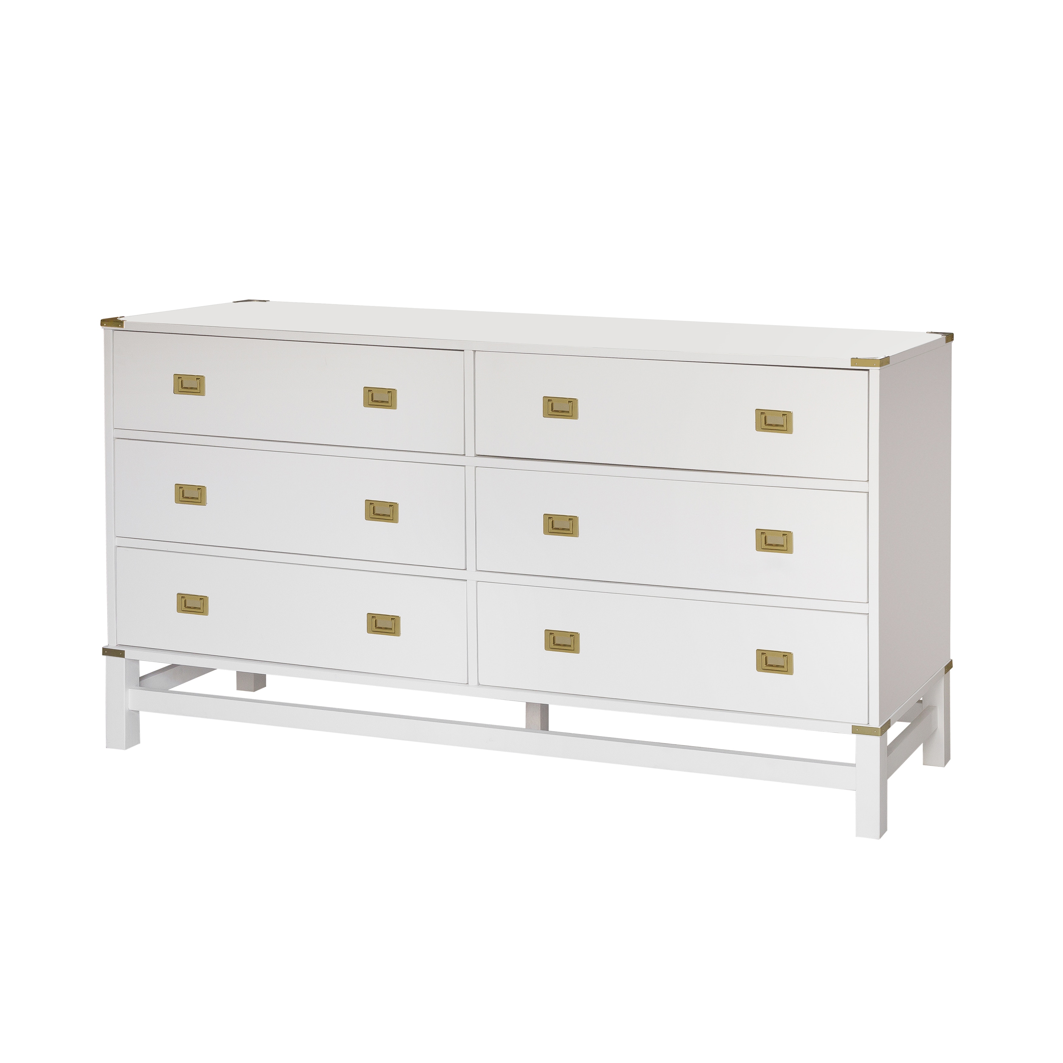 Modrn Glam 6 Drawer Dresser Bianca White With Satin Brass Rocshop
